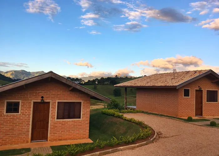 The 1-bedroom Chales Canto Da Serra Sao Bento do Sapucai villa is located nearly a 10-minute ride from the Church of Saint Benedict and offers guests to enjoy their evening on a patio with a kitchenette.